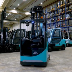 Apiladores disponibles en capacidades de 1.4 Toneladas, 1.6 Toneladas y 2.0 Toneladas, el KBR está diseñado para operar en pasillos estrechos, alcanzar alturas superiores a 10 metros y mover mercancía con rapidez y total control, manteniendo un bajo consumo energético gracias a su batería de 48V y hasta 700Ah.
